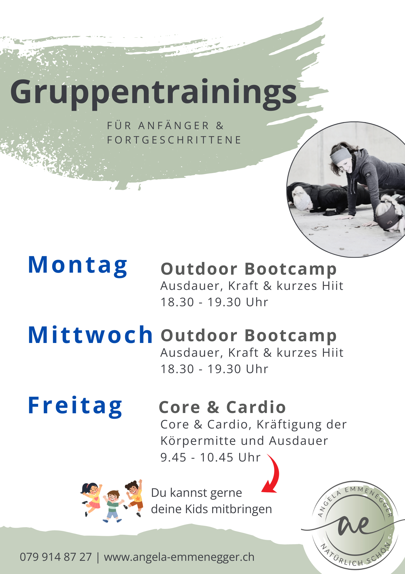 Die Trainings sind für jedes Fitnesslevel geeignet. Ich zeige dir immer, wie du die Übungen für dich anpassen kannst. Wir motivieren uns gegenseitig und spornen uns an.